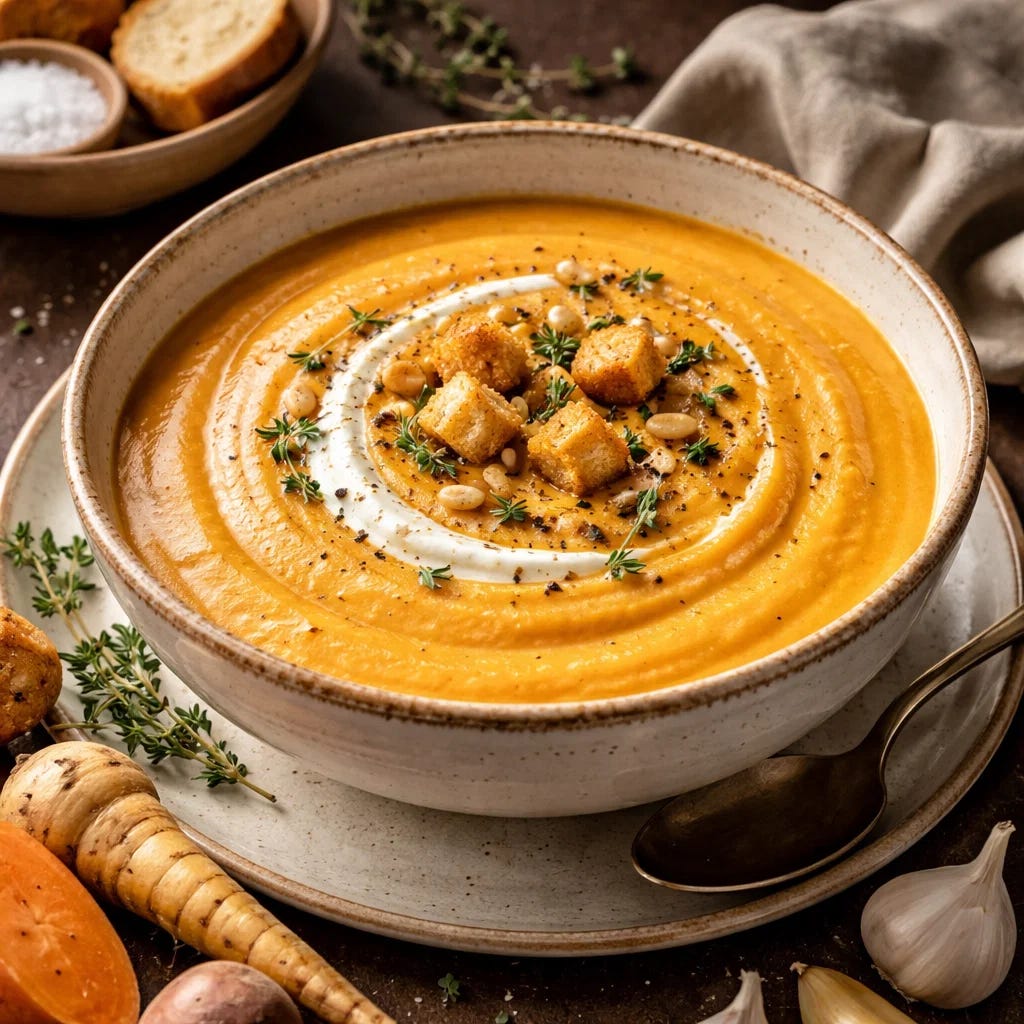 This hearty, warming soup is perfect for the cold days of January, made with seasonal root vegetables for a comforting, nutritious meal. The roasting process deepens their natural sweetness, making this soup incredibly flavorful.